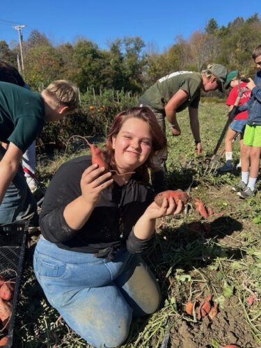Middle School students traveled to the Vermont Youth Conservation Corp (VYCC) in Richmond, VT for a day of service learning. Students spent the day clearing a field of sweet potatoes and harvesting butternut squash for the VT farm health shares program. The day was full of hands-on-learning, hard work and community building! The Middle School class looks forward to returning to VYCC for more service learning days throughout the school year.
